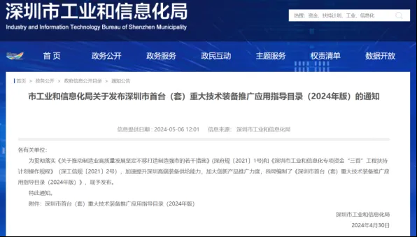 5月6日,深圳市工业和信息化局发布了《深圳市首台(套)重大技术装备推广应用指导目录(2024年版)》的通知,其中,必一运动干燥净化一体机作为其他重大技术装备成功入选!